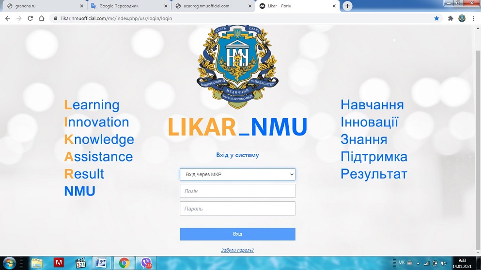 authorization in the LIKAR_NMU distance learning platform
