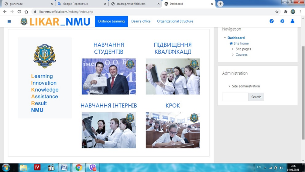 LIKAR_NMU is a distance learning platform of Bogomolets National Medical University, which is built on the basis of the Moso electronic distance learning system. Moso is a corporate version of the open-source Moodle system, which includes all the capabilities of Moodle and adds to them the capabilities that are industry-standard for institutions, companies and new educational institutions.