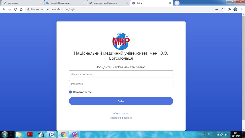authorization in the LIKAR_NMU distance learning platform